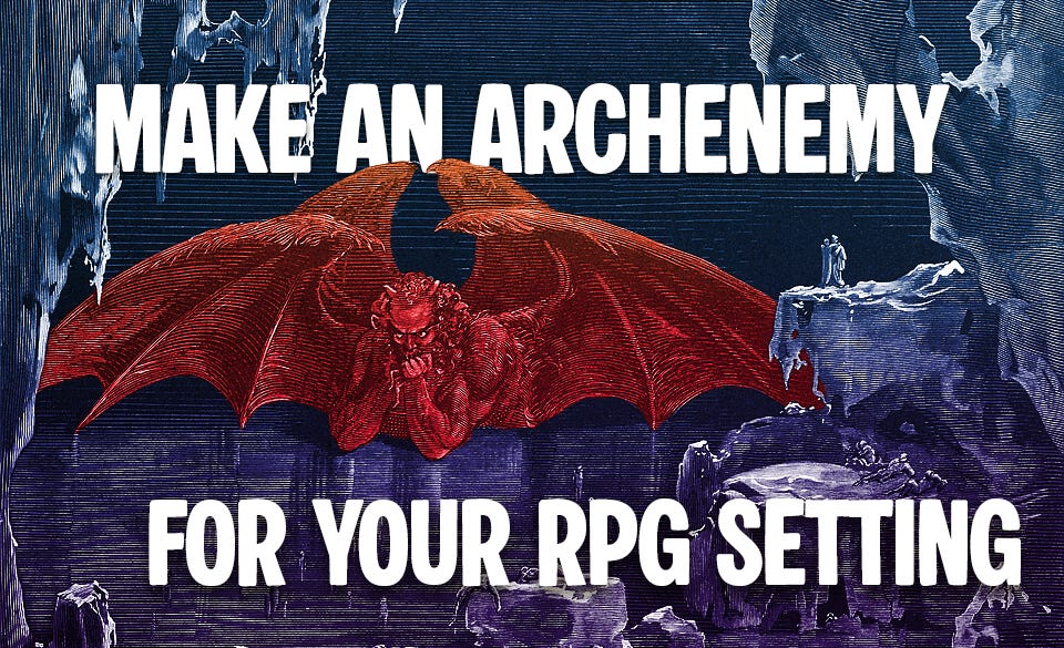 This particularly helps when you are making a Setting for an RPG. When the Archenemy is there, you know your readers and players have a corner stone set: there is no greater enemy than the Archenemy.